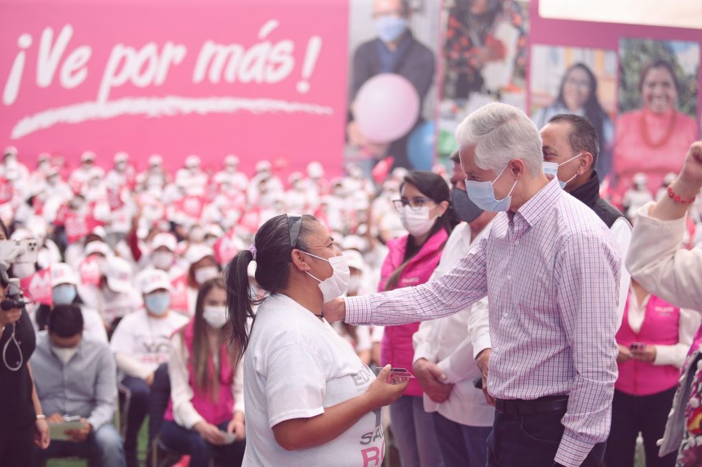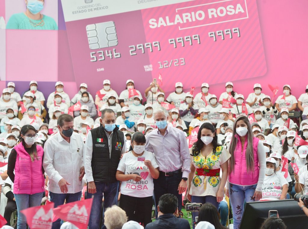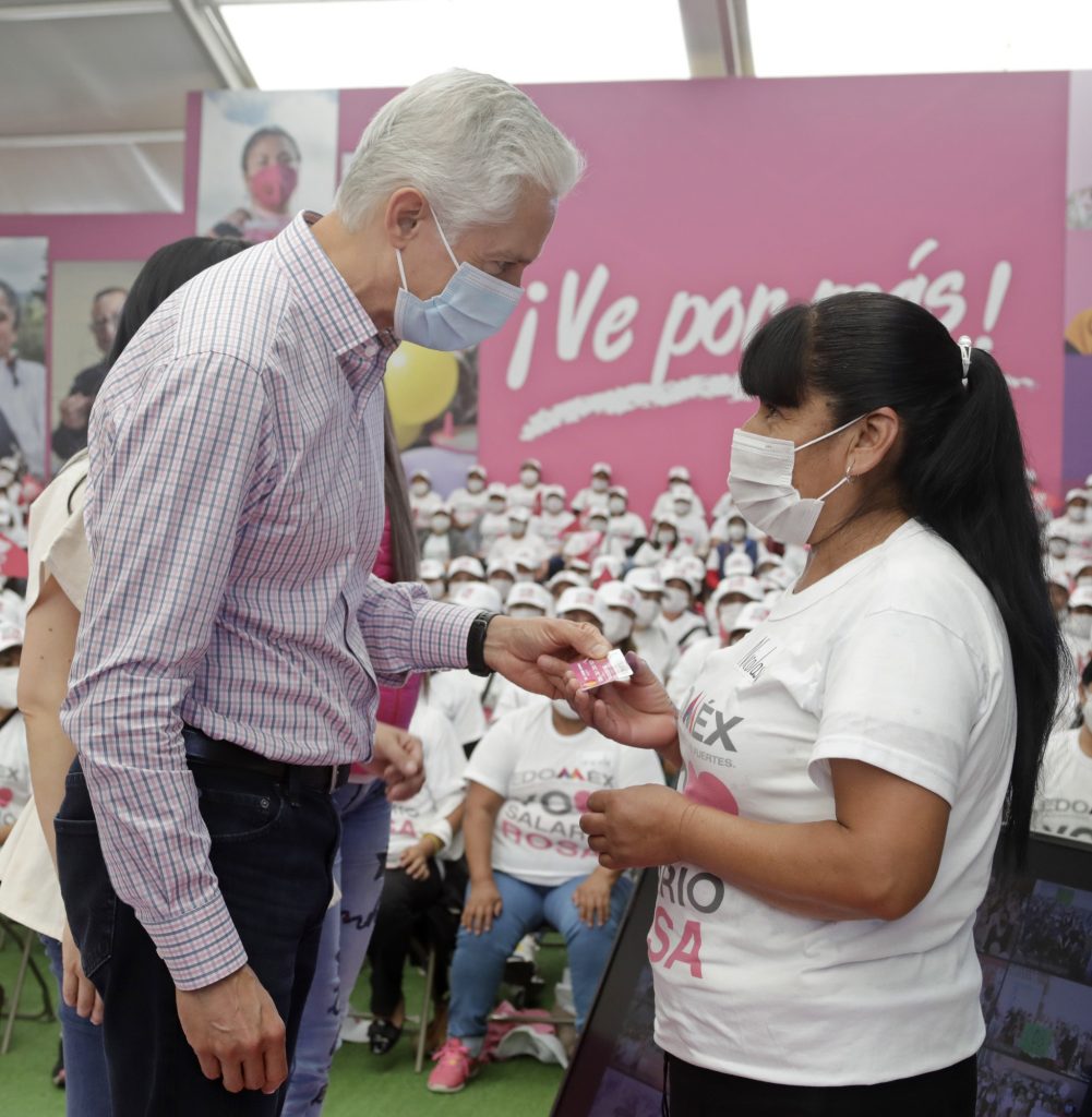 Asimismo, entregó más de 6 mil tarjetas del programa Salario rosa a jefas de familia de 14 municipios de la Región de Las Pirámides, a quienes garantizó que este apoyo es permanente, ya que busca impulsar su pleno desarrollo.