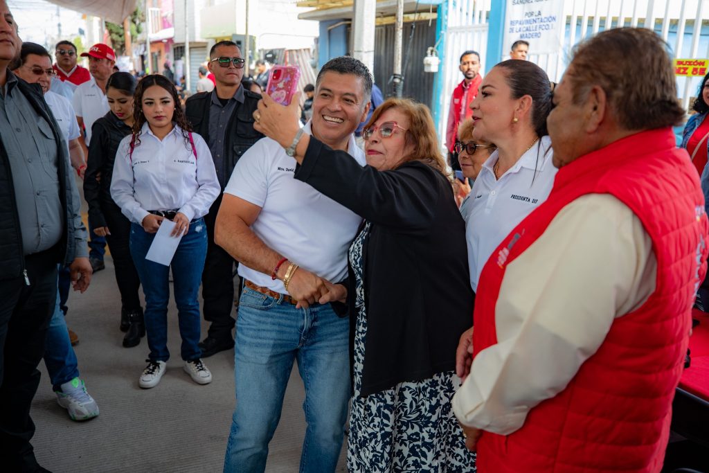 El presidente municipal de Coacalco, David Sánchez Isidoro, inauguró la repavimentación con concreto hidráulico de más de 1,600 metros cuadrados en la calle Francisco I. Madero, en la colonia Villa de las Manzanas.