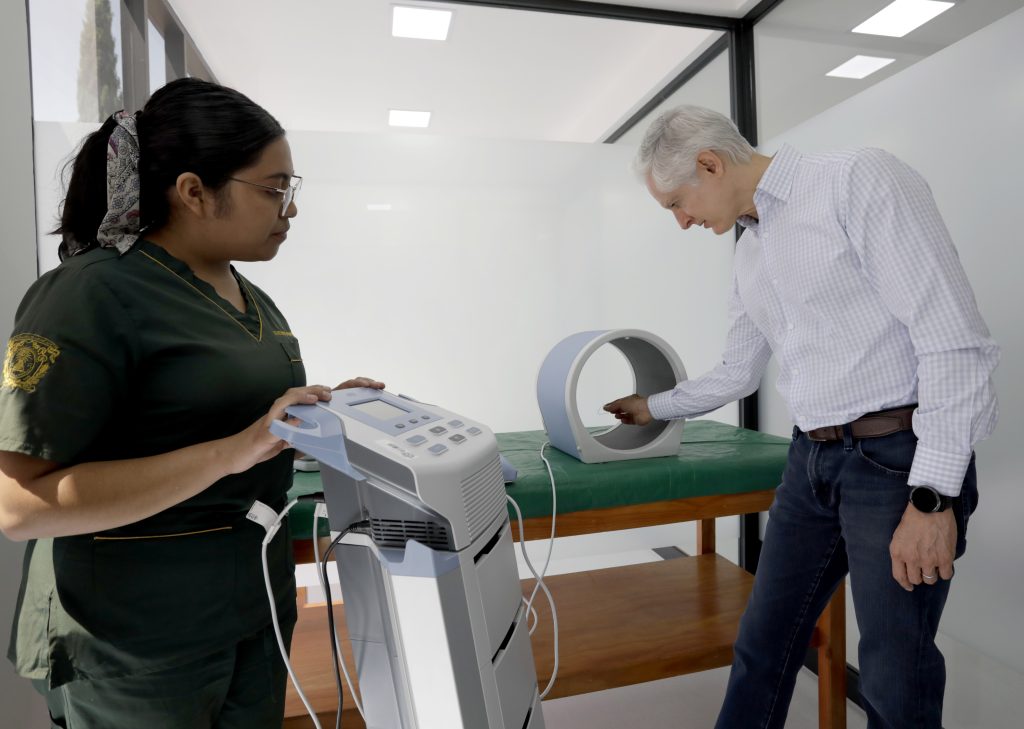 En esta gira de trabajo, en la que también estuvo acompañado por Eduardo Rosas González, Director de Fortalecimiento Institucional de la Dirección General de Educación Superior Universitaria e Intercultural (DGESUI) de la Secretaría de Educación Pública del Gobierno de México y por Rodrigo Jarque Lira, Secretario de Finanzas, el mandatario estatal recorrió aulas del taller de fisioterapia y terapia ocupacional, un consultorio de valoración, las áreas de magnetoterapia, de evaluación cognitiva sensorial y motora, así como los laboratorios de ergonomía, electroterapia, mecanoterapia, hidroterapia, órtesis y de evaluación y sistemas, donde saludó a universitarios y docentes de la Facultad de Medicina.