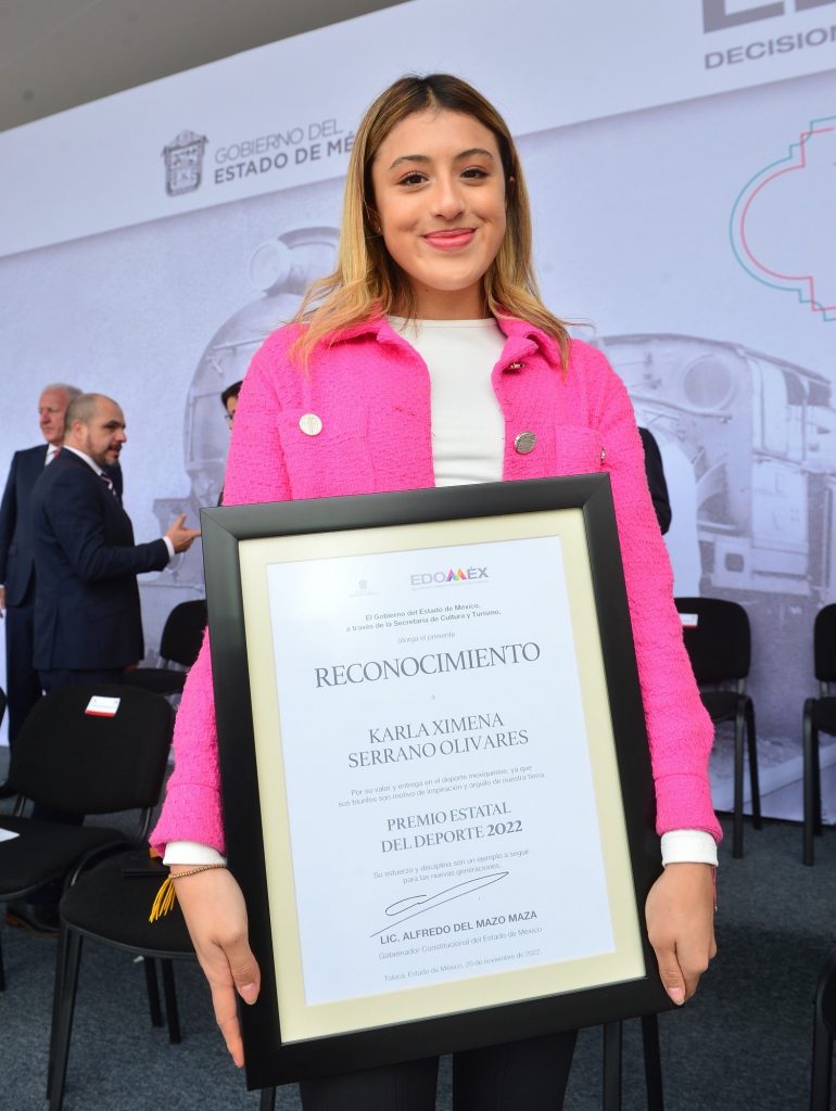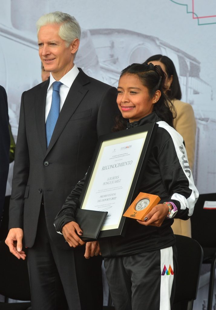 “Quiero aprovechar este momento para saludar a Karla, a Lourdes a Isaac. El día de hoy, el Señor Gobernador les entregó el Premio Estatal del Deporte 2022. Se trata de una justa recompensa a tres grandes talentos deportivos mexiquenses, que han forjado con tesón y mentalidad ganadora, historias personales de éxito, que todos debemos emular. Son ejemplo, inspiradores para niñas, niños y jóvenes, son motivo de orgullo de todas y todos los mexiquenses”, externó.