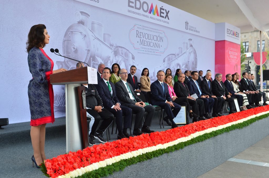 “El largo recorrido del proceso de institucionalización del ejercicio democrático del poder público, fruto de la Revolución, ha precisado del compromiso de los gobernantes de cada momento. Y así lo hace nuestro Gobernador Alfredo Del Mazo en el día a día de su Gobierno, con visión de futuro y de responsabilidad social, trabajando en favor de la gente, de sus causas, del respeto y la solidaridad con las autoridades de los tres órdenes de Gobierno, porque ha señalado que el objetivo principal es el bienestar de las y los mexiquenses”, expresó.
