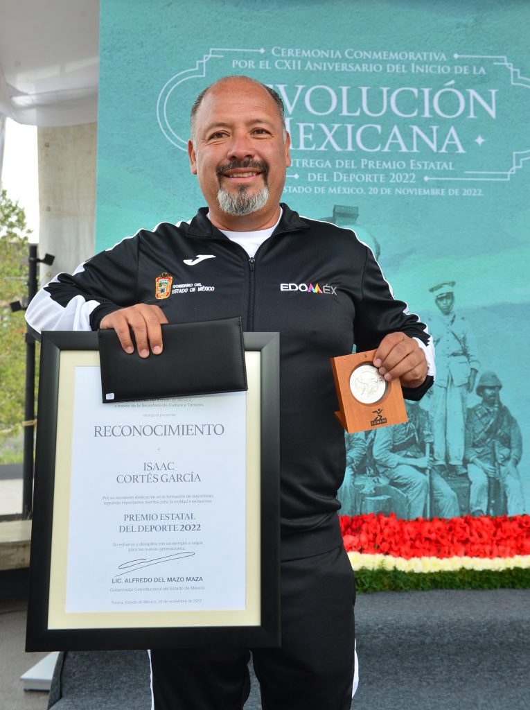 En tanto que Isaac Cortés fue galardonado por su compromiso como entrenador deportivo, donde ganó el segundo lugar en relevo femenil, realizado en el Campeonato Mundial de Alejandría, Egipto, este año, y el primer lugar relevo mixto en la Copa del Mundo, en Bulgaria.