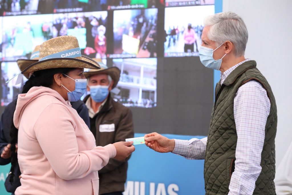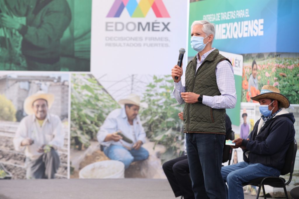 • Entrega Gobernador Alfredo Del Mazo tarjetas del programa para el Campo Mexiquense, para 4 mil 700 familias de la región de Valle de Bravo.