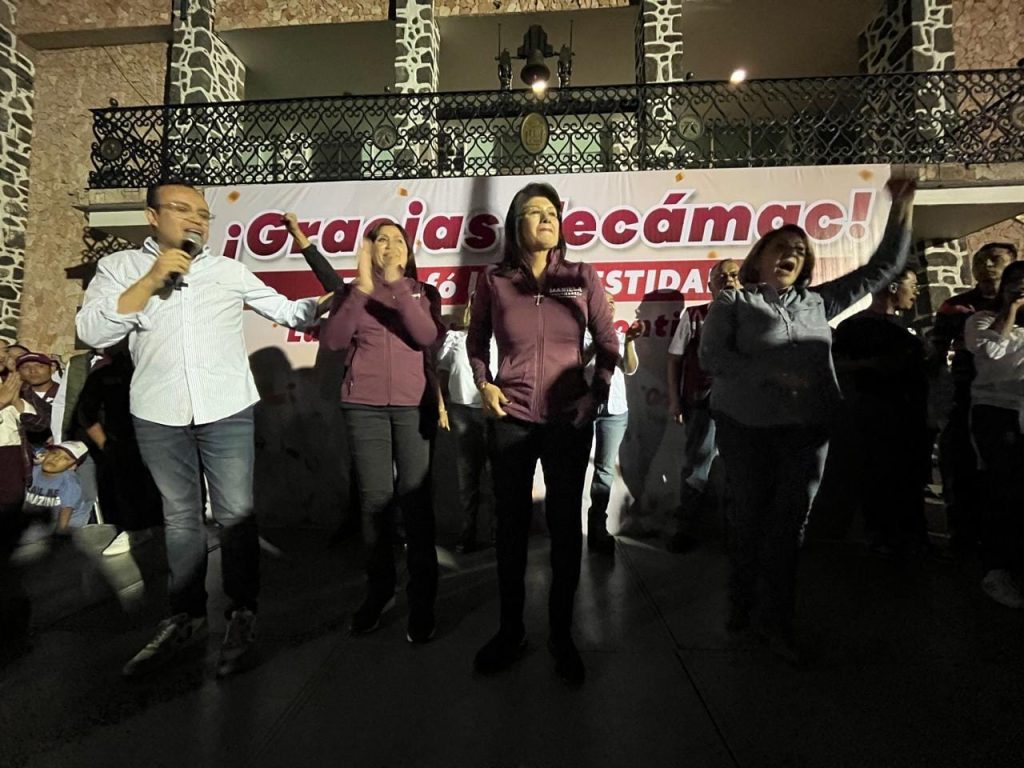 Tras festinar la arrolladora ventaja de Sheinbaum, Gutiérrez Escalante agradeció a los tecamaquenses el total apoyo a la abanderada presidencial para que continúe el proyecto de la transformación del país y se convierta en la primera mujer presidenta de México.