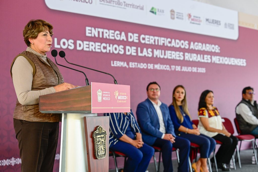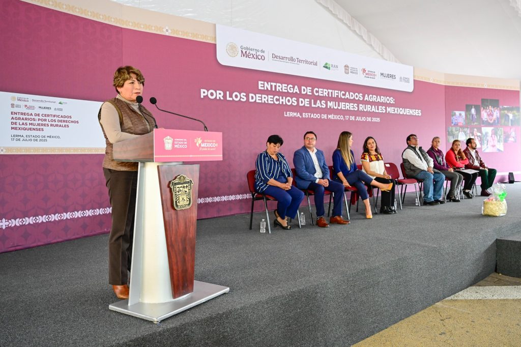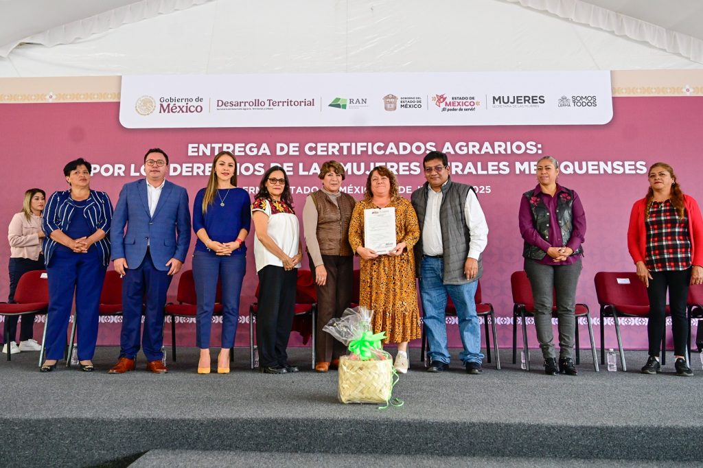 LERMA, Estado de México. – En un acto de justicia social para el campo mexiquense, la Gobernadora Delfina Gómez Álvarez entregó 500 certificados agrarios a mujeres rurales, lo que representa un paso decisivo hacia el abatimiento de un rezago histórico de más de 40 años en trámites ante el Registro Agrario Nacional.