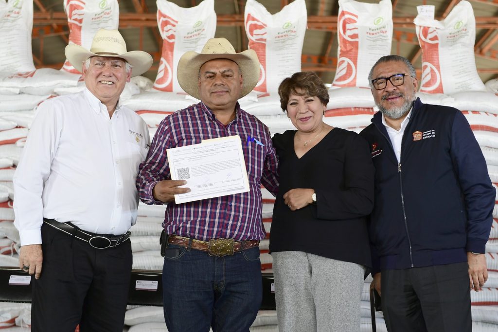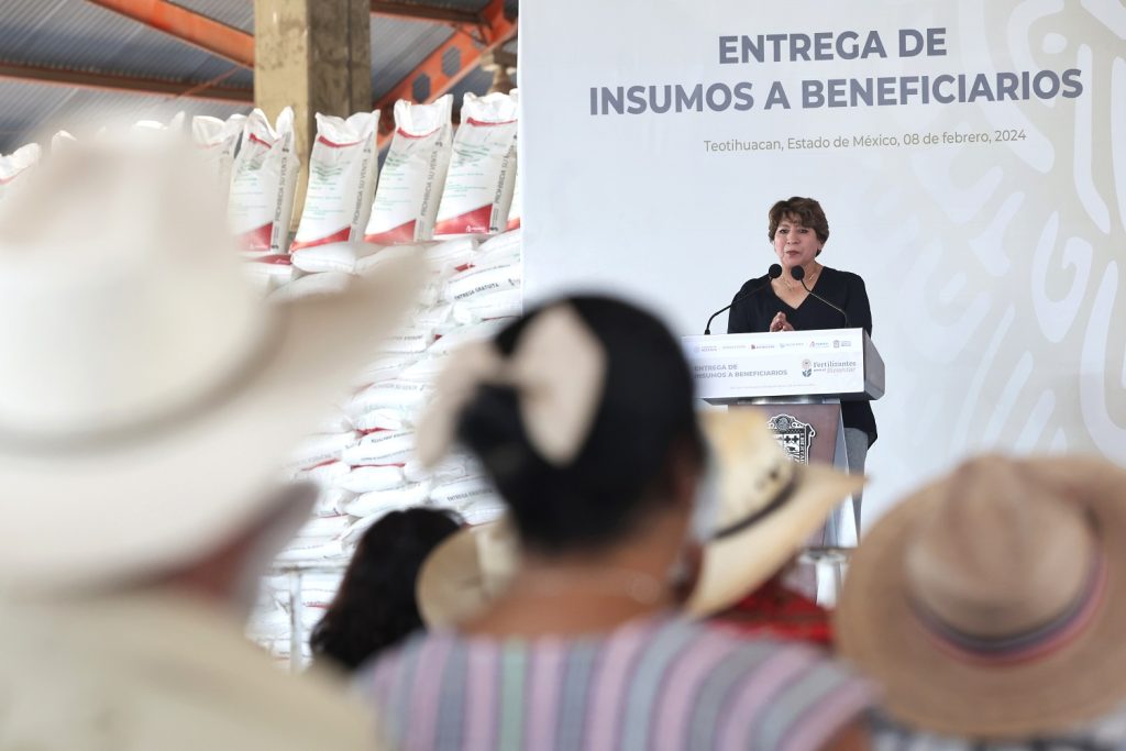 TEOTIHUACÁN, Estado de México.- Con el propósito de impulsar y fortalecer la producción interna en el estado y así coadyuvar en la autosuficiencia alimentaria del país, la Maestra Delfina Gómez Álvarez, Gobernadora del Estado de México arrancó en conjunto con el Gobierno federal la entrega de fertilizantes gratuitos para productores mexiquenses.