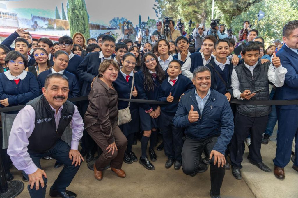Para garantizar el acceso a la educación, combatir la desigualdad y ampliar las oportunidades de desarrollo, la gobernadora del Estado de México, Delfina Gómez Álvarez, realizó la entrega de apoyos para infraestructura educativa y mobiliario escolar en la Escuela Secundaria Oficial número 0337 “Junípero Serra” de Coacalco. Además, dio inicio a la dispersión de las primeras «Becas para el Bienestar por Aprovechamiento Académico» para el ciclo escolar 2025-2026, en el Tecnológico de Estudios Superiores de Coacalco (TESCO).