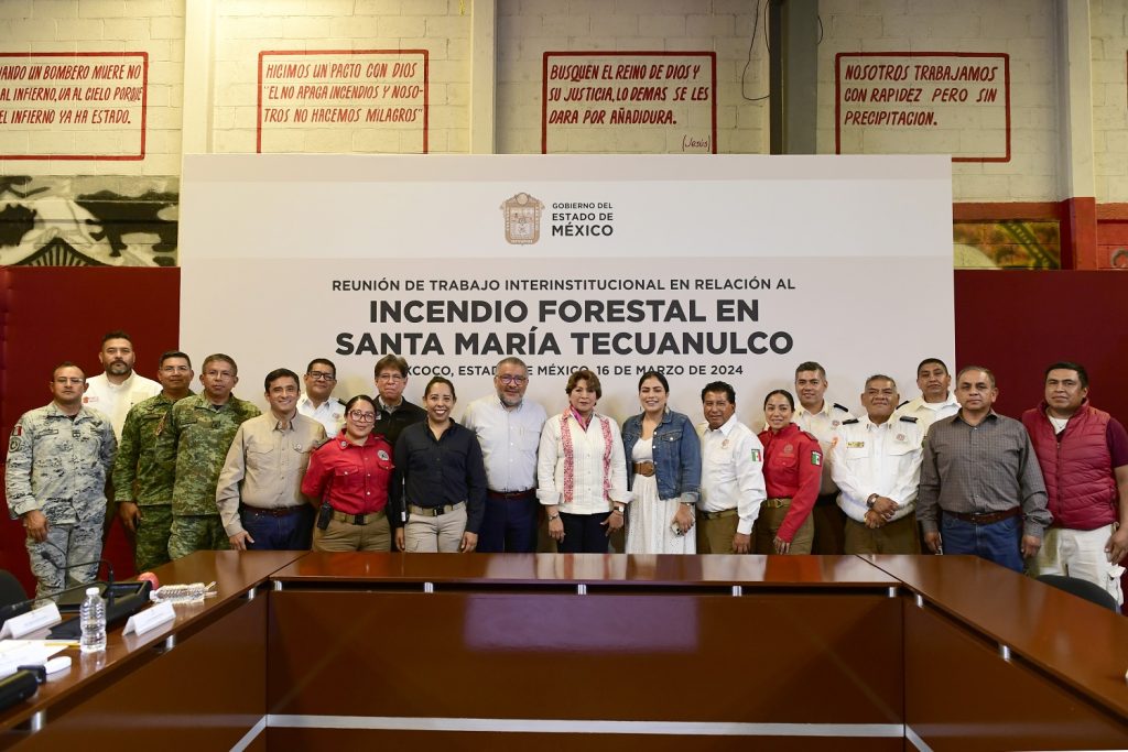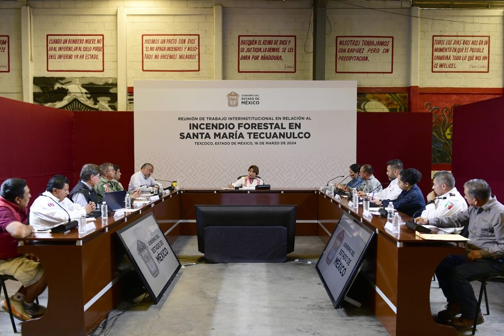 TEXCOCO, Estado de México.-En seguimiento a los trabajos para sofocar el incendio forestal registrado el 14 de marzo pasado en Santa María Tecuanulco, Texcoco, la Gobernadora del Estado de México instaló una mesa de trabajo interinstitucional para prevenir y atender incendios forestales.