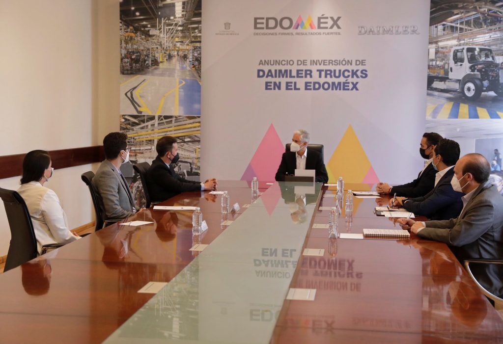 Toluca, Estado de México, 2 de agosto de 2021. El Gobernador Alfredo Del Mazo Maza informó que la empresa Daimler Trucks invertirá más de 30 millones de dólares en su planta de Santiago Tianguistenco, donde destacó que en la entidad se trabaja en acciones de mejora regulatoria para atraer más inversiones.