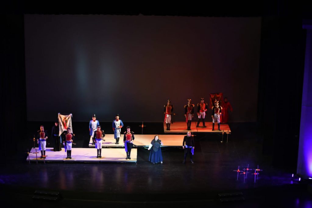 El espectáculo continuó con la puesta en escena, por parte de actores del Teatro Landó, que protagonizaron a grandes bastiones de la Independencia, como Miguel Hidalgo y Costilla, Ignacio Allende, José Mariano Jiménez, y el pueblo que se unió a la lucha.