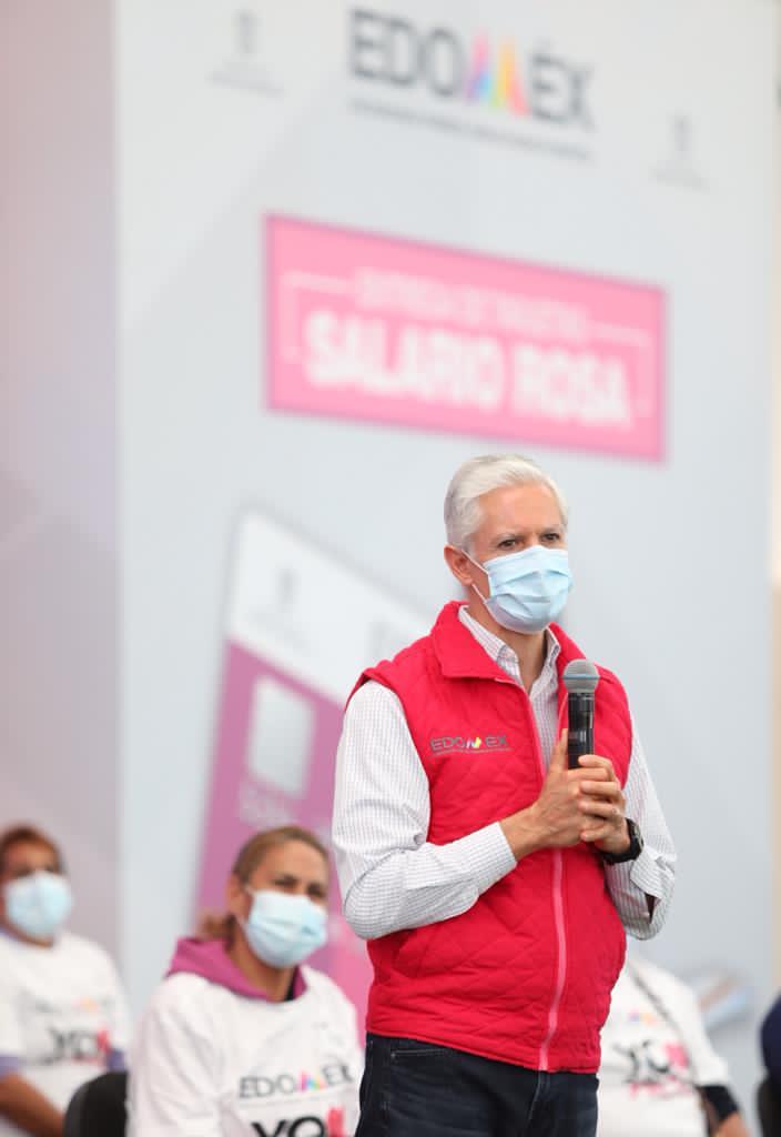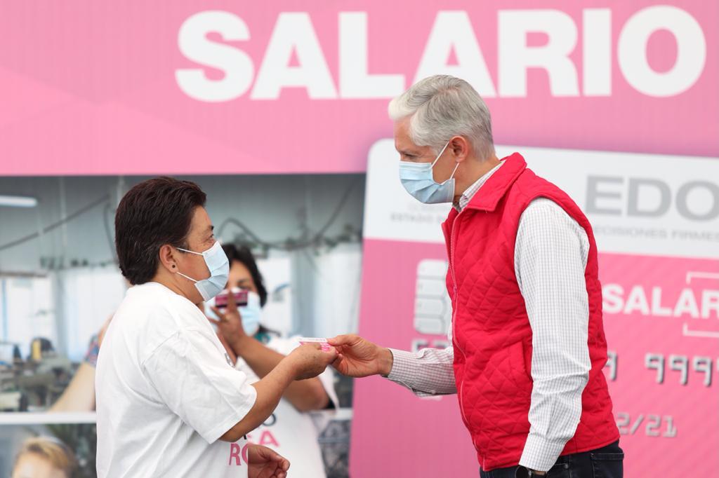 Alfredo Del Mazo dio a conocer que este día se convierten por primera vez en beneficiarias del Salario rosa más de 4 mil 300 mujeres de la zona oriente del Estado de México, quienes recibirán de manera permanente este apoyo.