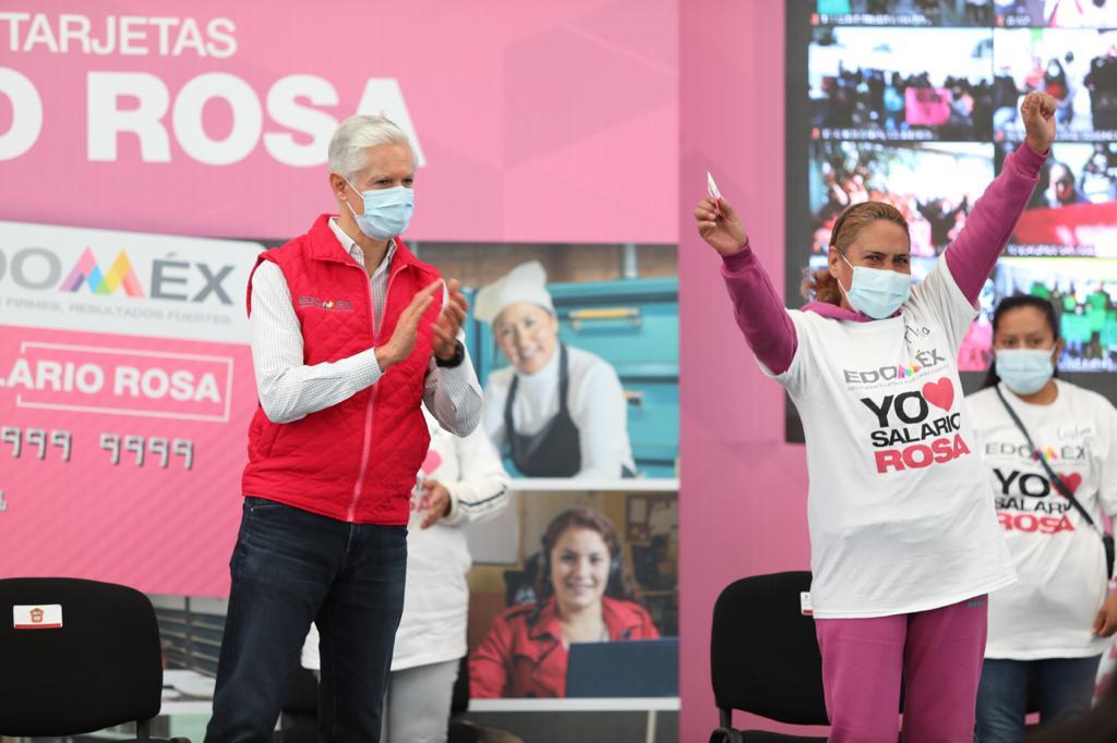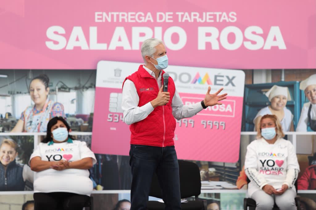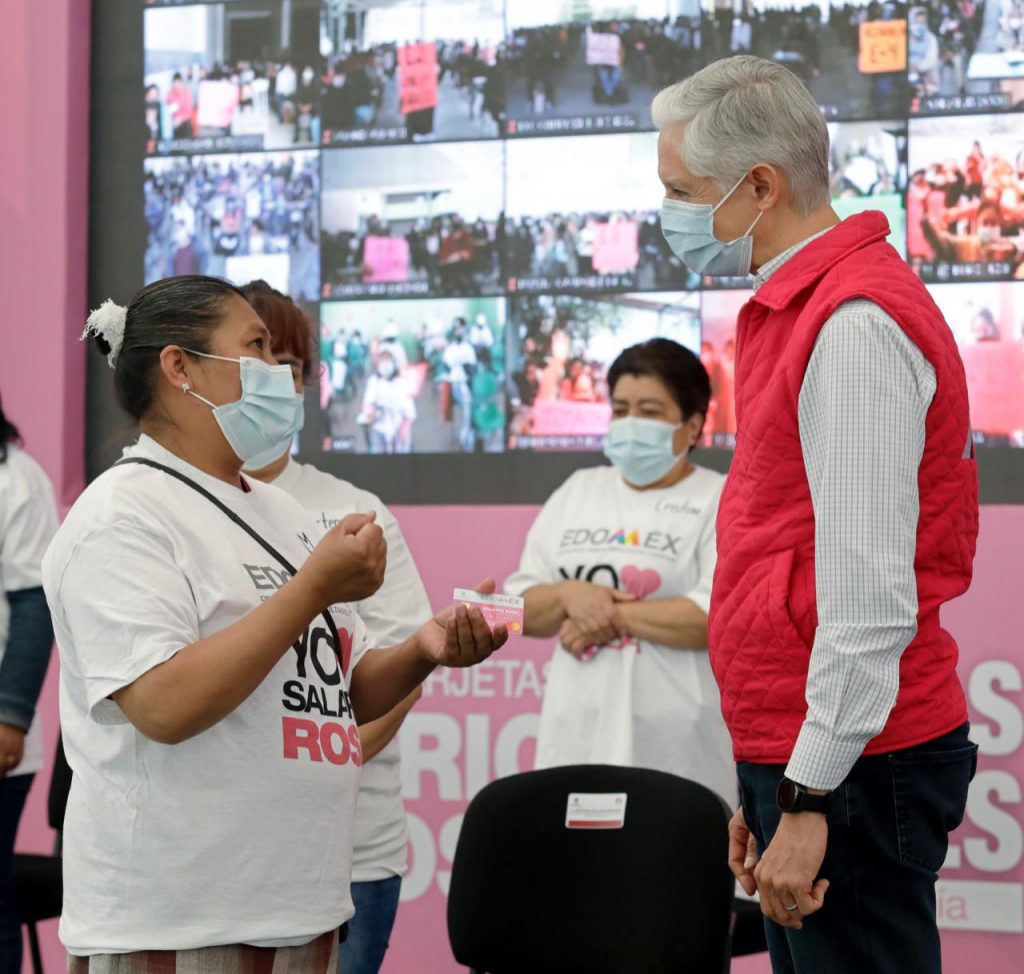 “Hoy llegamos a 400 mil beneficiarias del Salario rosa en todo el Estado de México, y esto nos da muchísimo gusto porque son 400 mil familias que reciben y van a recibir de manera permanente y constante este apoyo del Salario rosa.