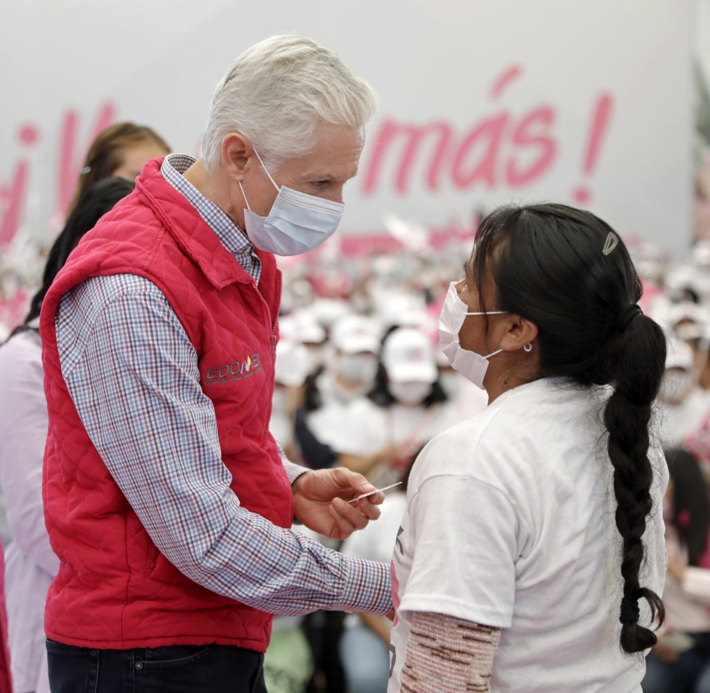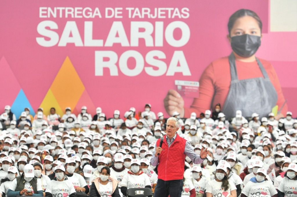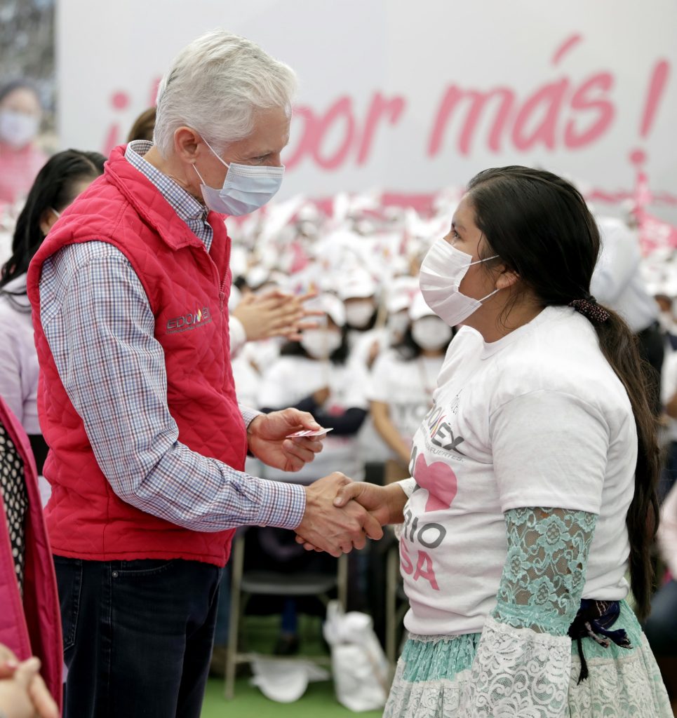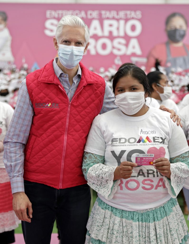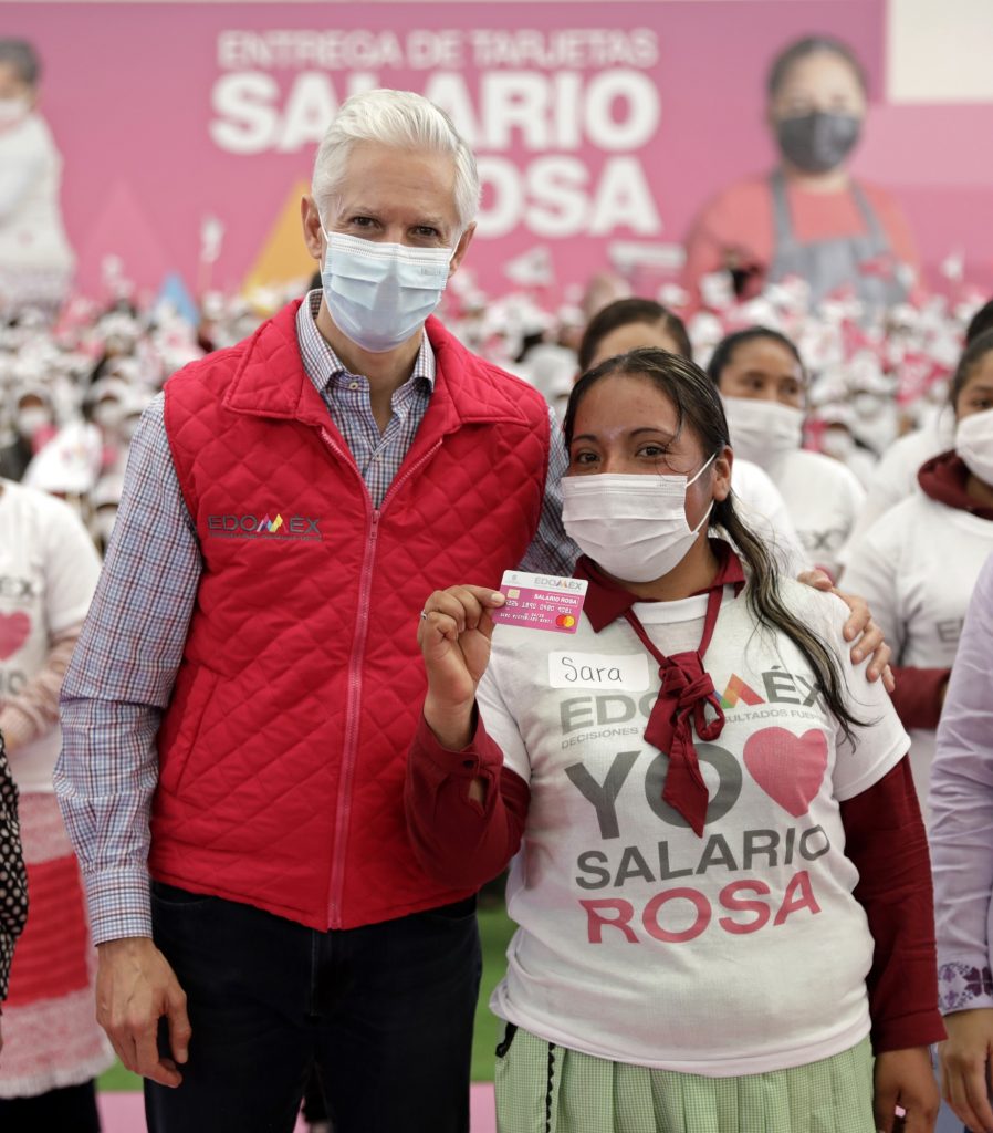• Entrega tarjetas del Salario rosa a 3 mil 600 mujeres de 33 municipios del Edoméx.