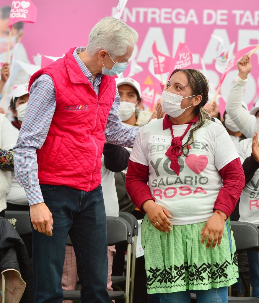 Alfredo Del Mazo destacó que el Salario rosa es un programa que tiene casi cinco años apoyando a las mujeres mexiquenses, quienes son las encargadas que sus hijos, esposos y padres, salgan adelante.