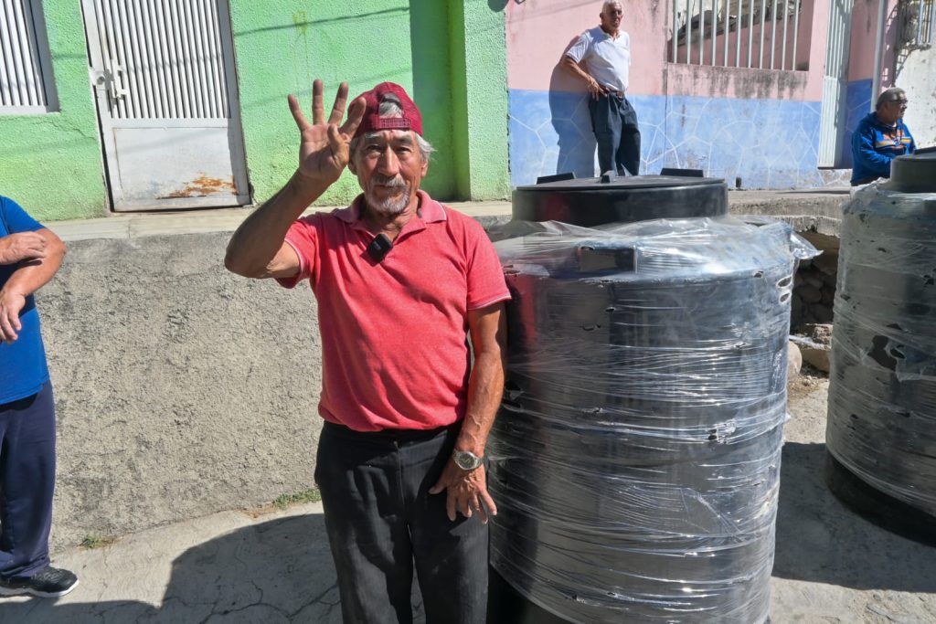 Antes, en un recorrido por la colonia San Ildefonso, la Alcaldesa entregó tinacos a vecinas y vecinos de ese lugar, con capacidad de almacenamiento de mil 100 litros cada uno, con lo que podrán afrontar de mejor manera la temporada de estiaje, al contar con agua potable en sus hogares.