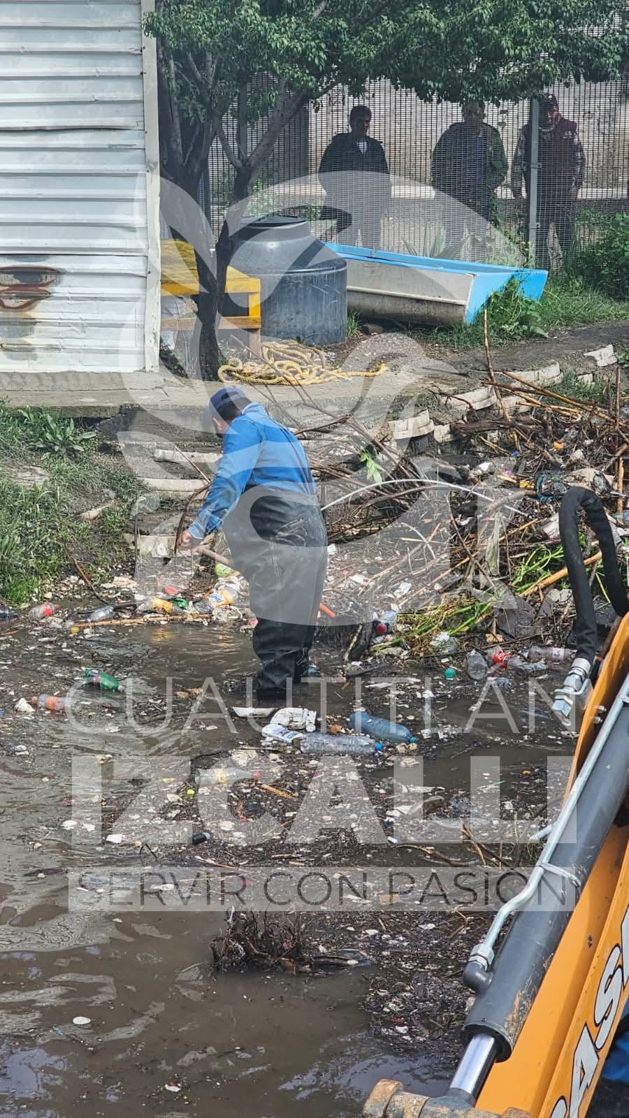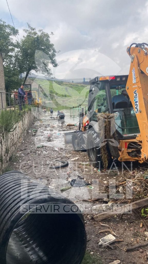 De manera coordinada distintas instancias de gobierno realizan labores de limpieza al interior de la presa, además de encostalamiento en calles aledañas.