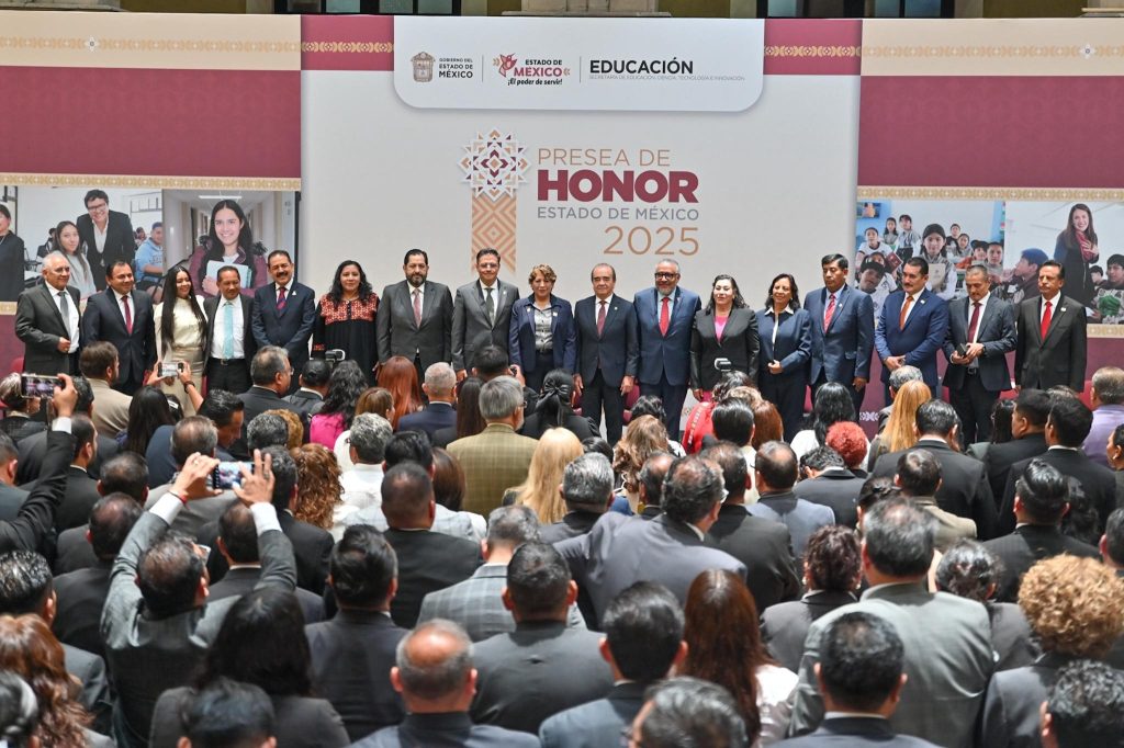 Los diputados José Francisco Vázquez Rodríguez y Maurilio Hernández González, presidentes de la Junta de Coordinación Política y de la Diputación Permanente del Poder Legislativo, respectivamente, así como el parlamentario Rigoberto Vargas Cervantes, presidente de la Comisión de Educación, Cultura, Ciencia y Tecnología del Congreso mexiquense, acompañaron a la gobernadora Delfina Gómez Álvarez en la entrega de la ‘Presea de Honor Estado de México 2025’, la condecoración ‘Maestro Altamirano’ y el estímulo ‘Laura Méndez de Cuenca’ a maestras y maestros que otorga el gobierno estatal en reconocimiento a su vocación.
