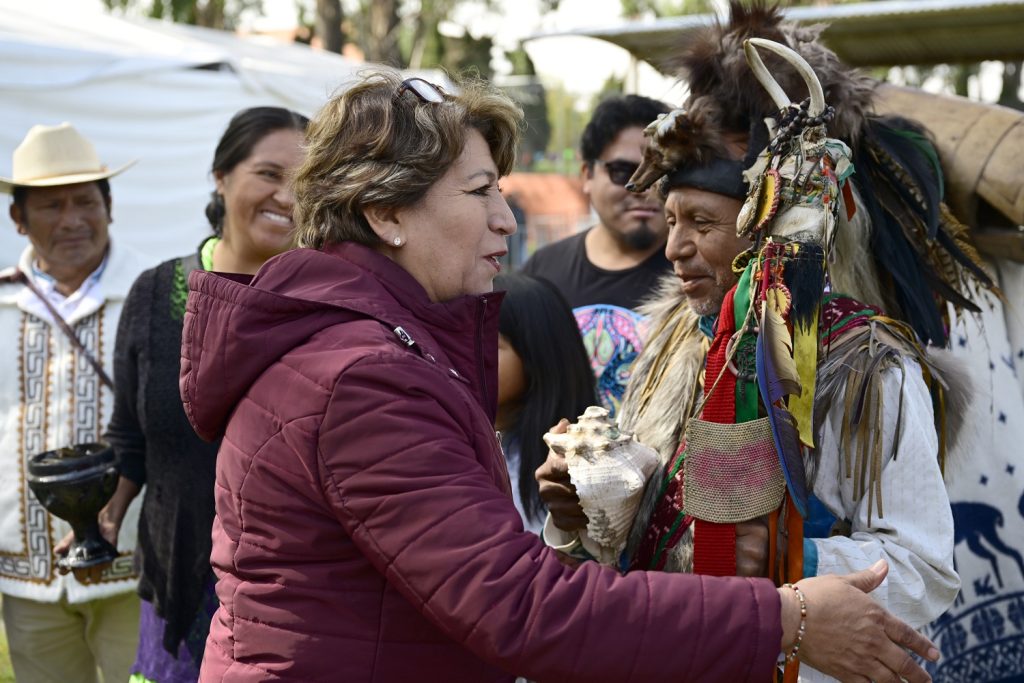 «Seguimos trabajando con ese reconocimiento, valoramos lo que integran los pueblos originarios, lo que han enseñado, que es primero el amor a la Madre Tierra, el amor a nuestros elementos como es el agua, como son nuestros bosques, como es la justicia social», afirmó la Maestra Delfina Gómez.
