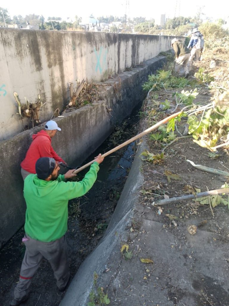 Abundó sobre los trabajos de limpieza y desmalezado en ríos y cauces, como los realizados en el Río Cuautitlán en coordinación con la Comisión Nacional del Agua (CONAGUA); y en el Canal de San José, en las inmediaciones del Carril de San Agustín, labores a las que próximamente se incorporará personal y maquinaria de la Comisión del Agua del Estado de México (CAEM).