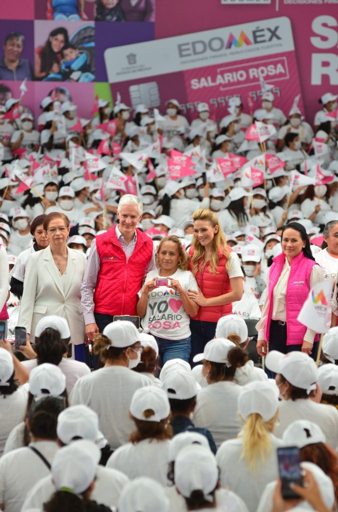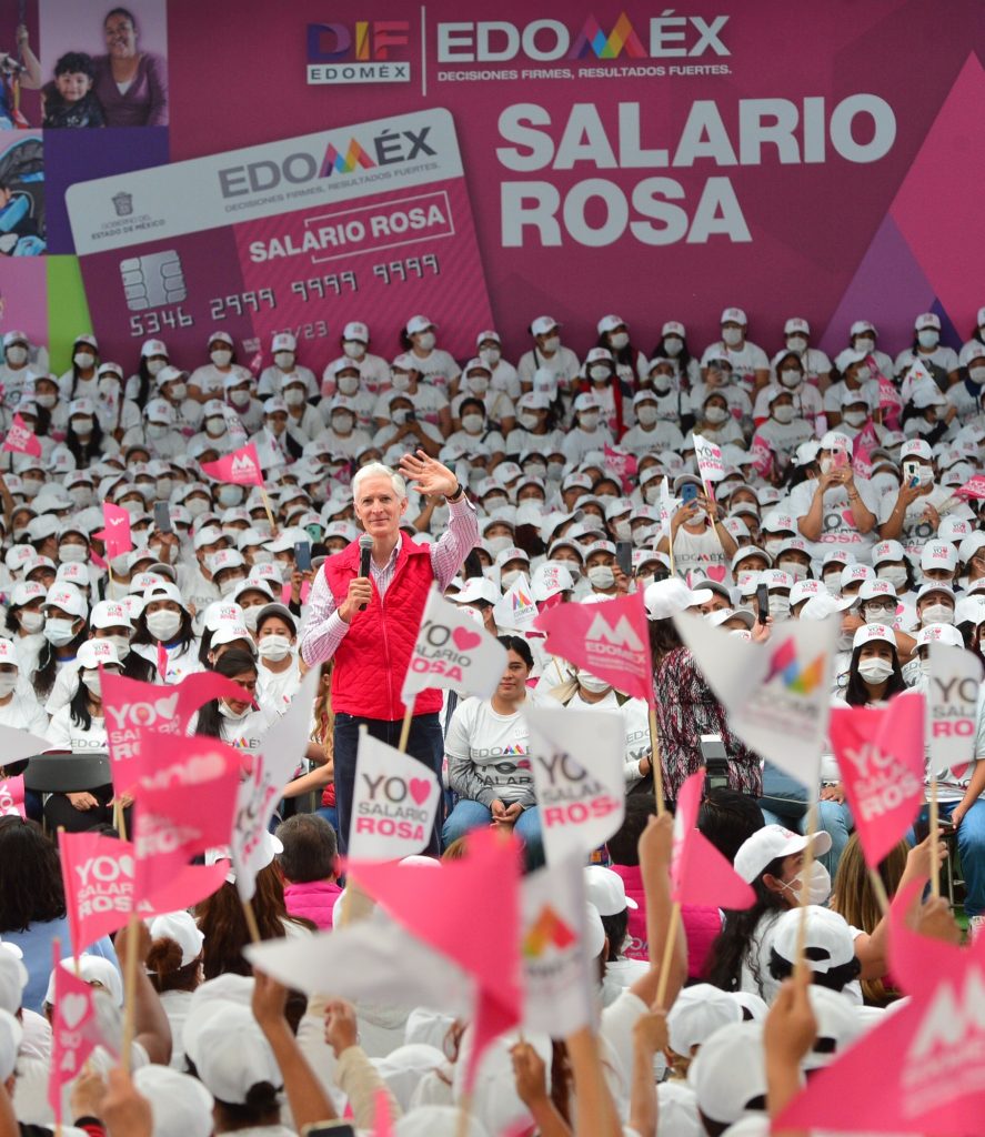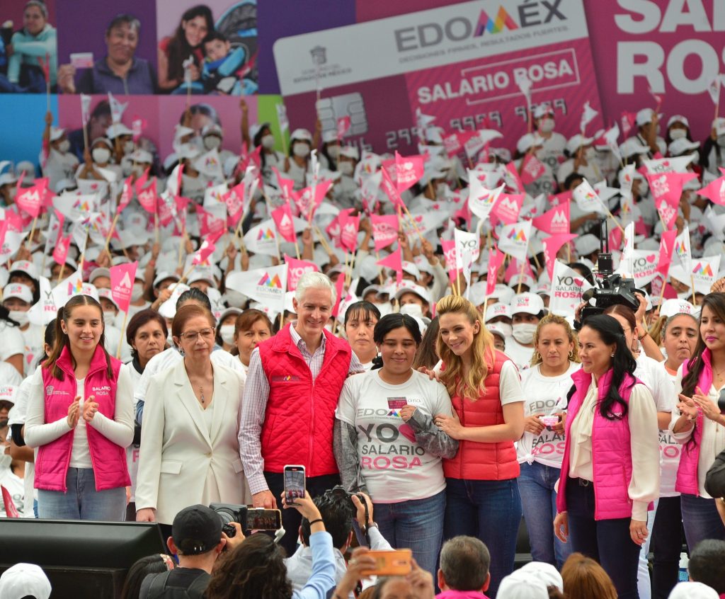 • Resalta Gobernador mexiquense que el Salario rosa es un programa permanente que permite a las amas de casa invertir el apoyo en lo que ellas deseen.